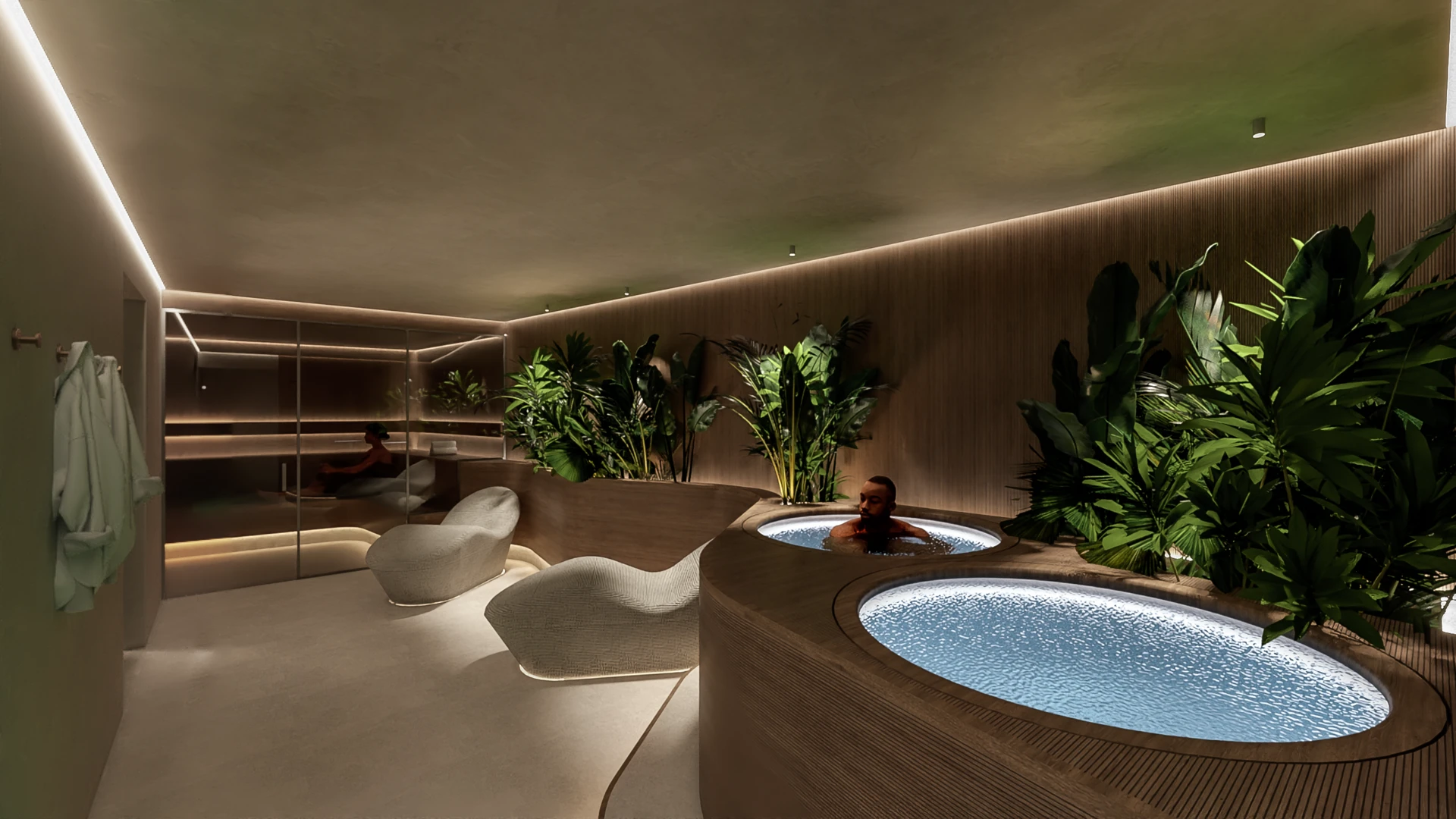 Further encouraging relaxation and calm, the wet spa features a sauna, hot loungers and an ice bath, providing options for hot and cold therapy. The ARMA spa has been designed with social wellness in mind, meaning users can use the facilities in pairs.